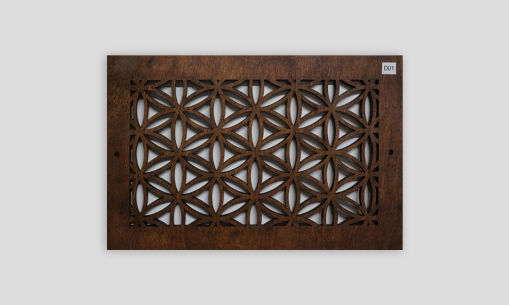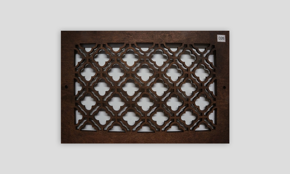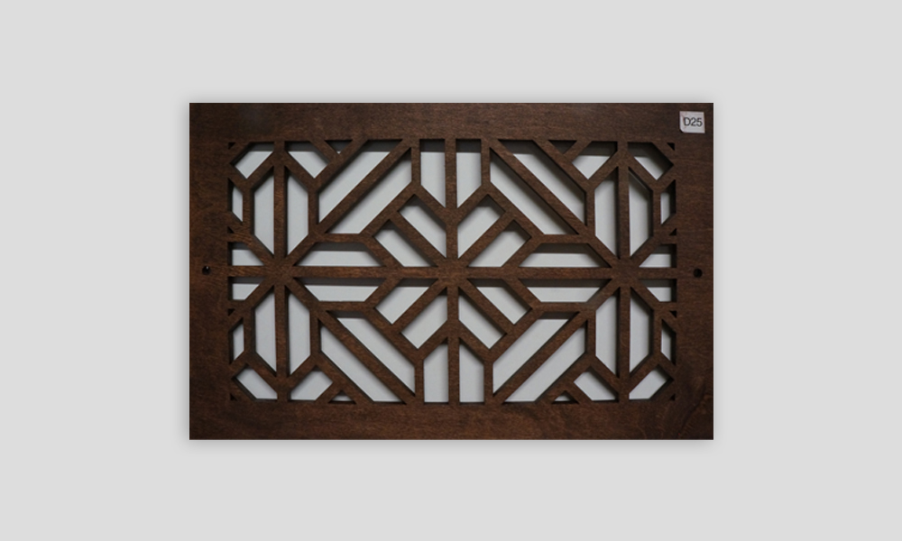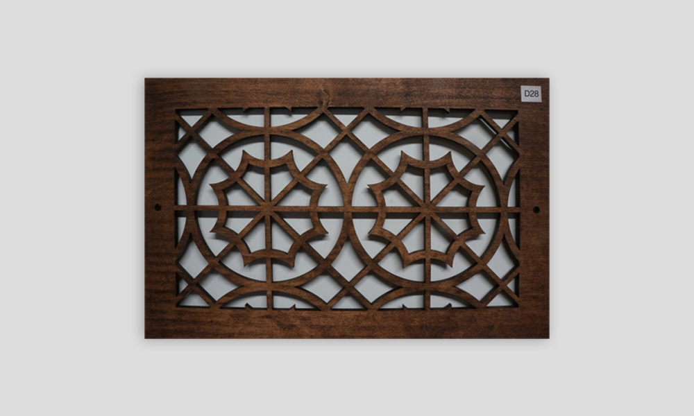 We can cut any size or shape of decorative wood panels that you need for your air conditioning vent on your wall or ceiling. Complete return air filter /grill assemblies are available on order. Grills are available with Magnetic flush mounting or Thumb screw. Instructions for measuring grilles are available upon request.